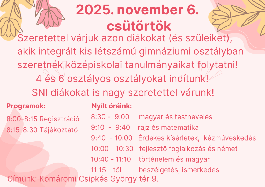 Szeretettel várunk minden felvételiző nyolcadikost!